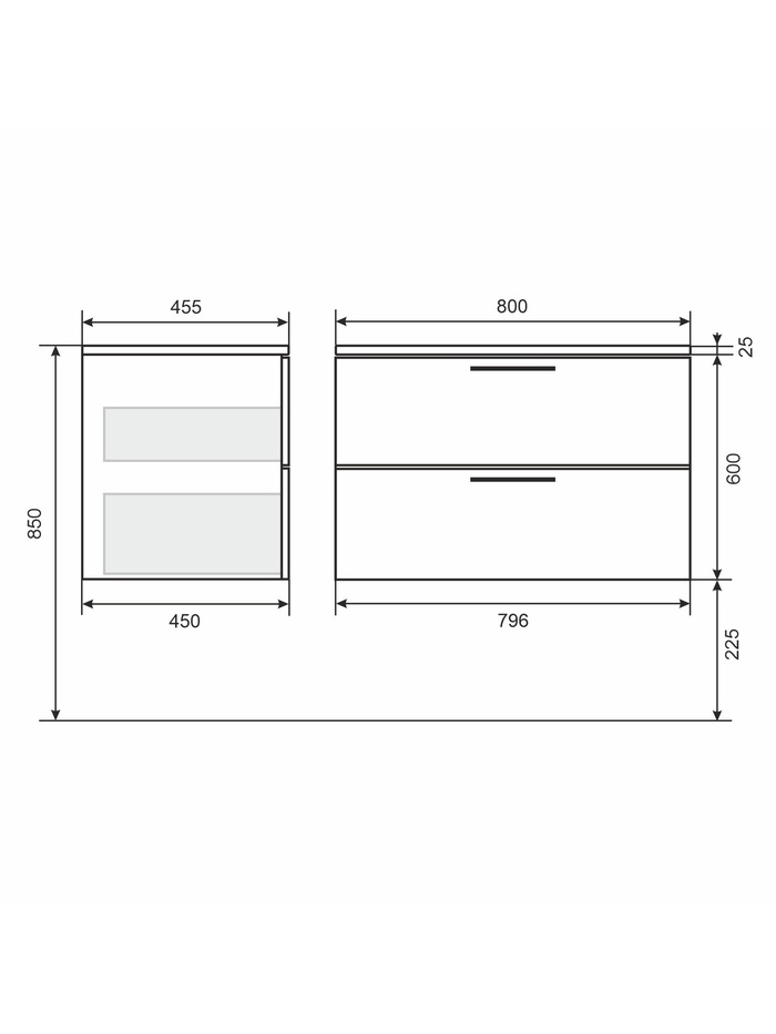 - Влагостойкие материалы: фасад и боковые стенки выполнены из влагостойкого МДФ, а ящики — из влагостойкой ЛДСП.