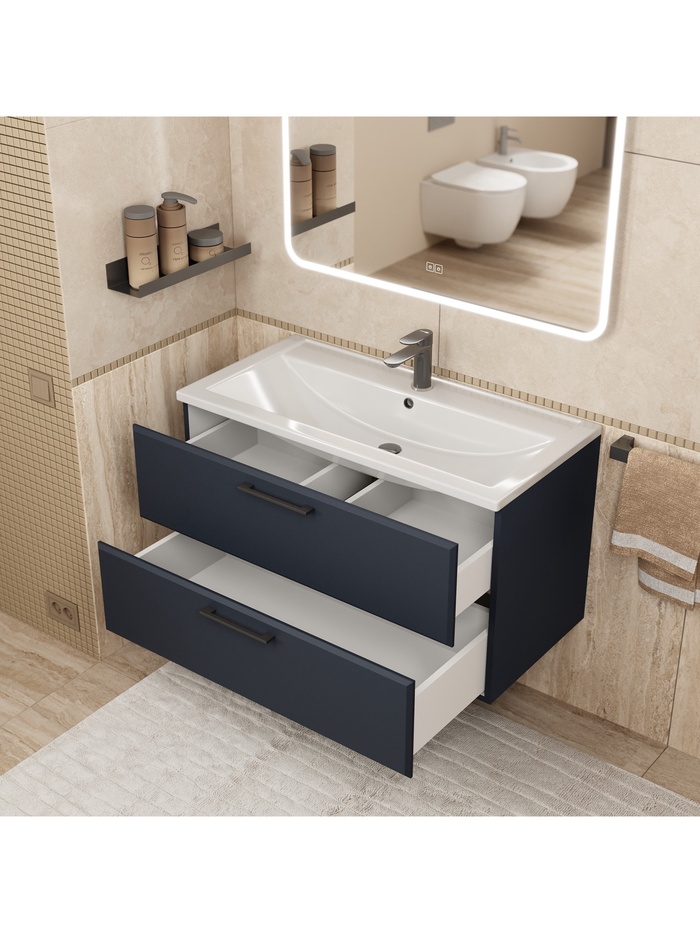 - Монтаж: подвесная тумба поставляется в собранном виде и укомплектована всей необходимой фурнитурой для быстрой установки.