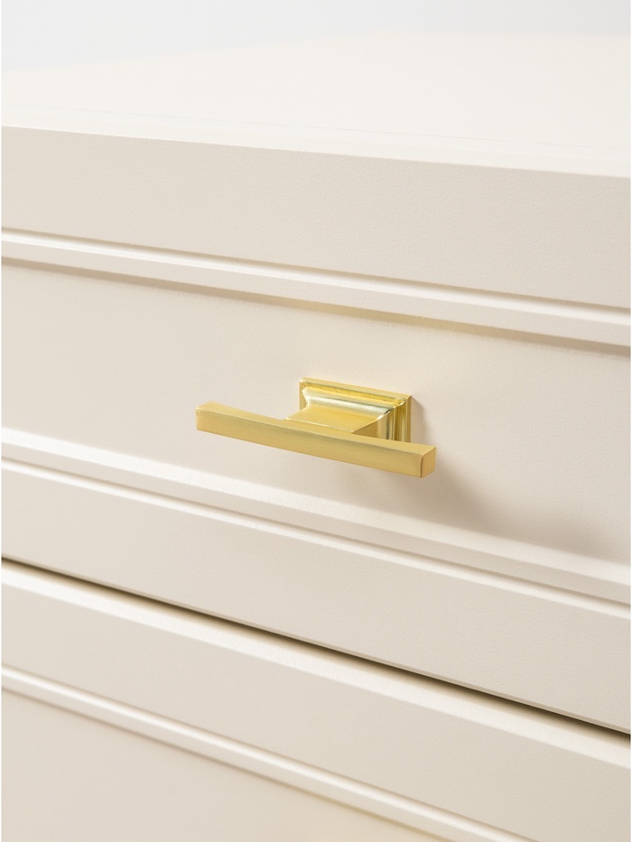 Фасады с глубокой фрезеровкой из МДФ подчёркивают классический стиль, а светлый оттенок «Слоновая кость» придаёт интерьеру лёгкость и визуально расширяет пространство. Гармоничное сочетание светлых тонов делает мебель универсальной для различных интерьерных решений.