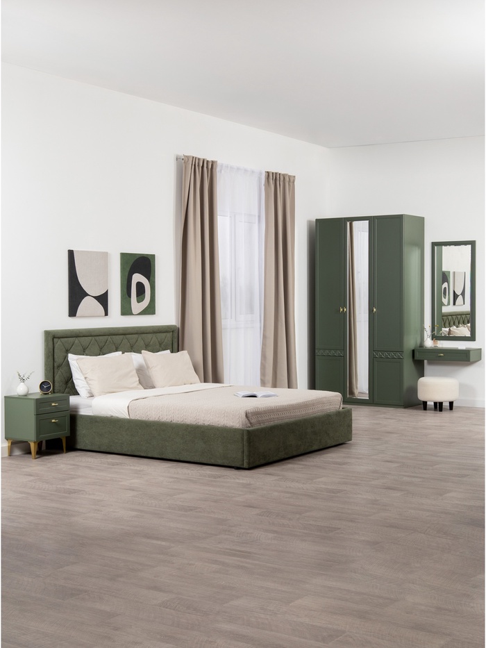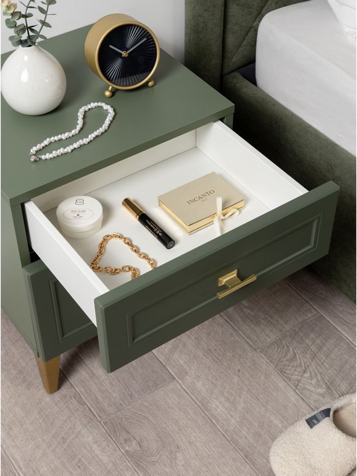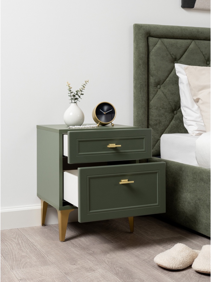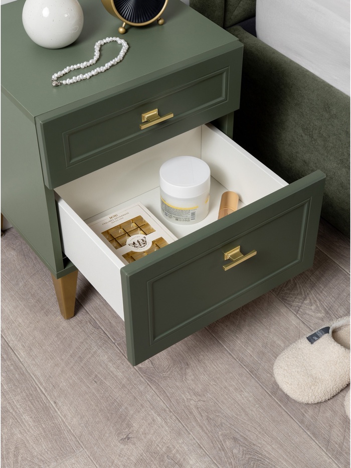 Тумба прикроватная «Марион» дымчатый зелёный / олива шагрень