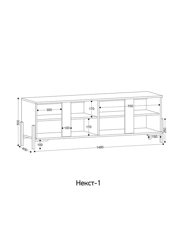 Технические характеристики Тумба под ТВ «Некст – 1», 1480×400×500 мм, цвет винтерберг/чёрный