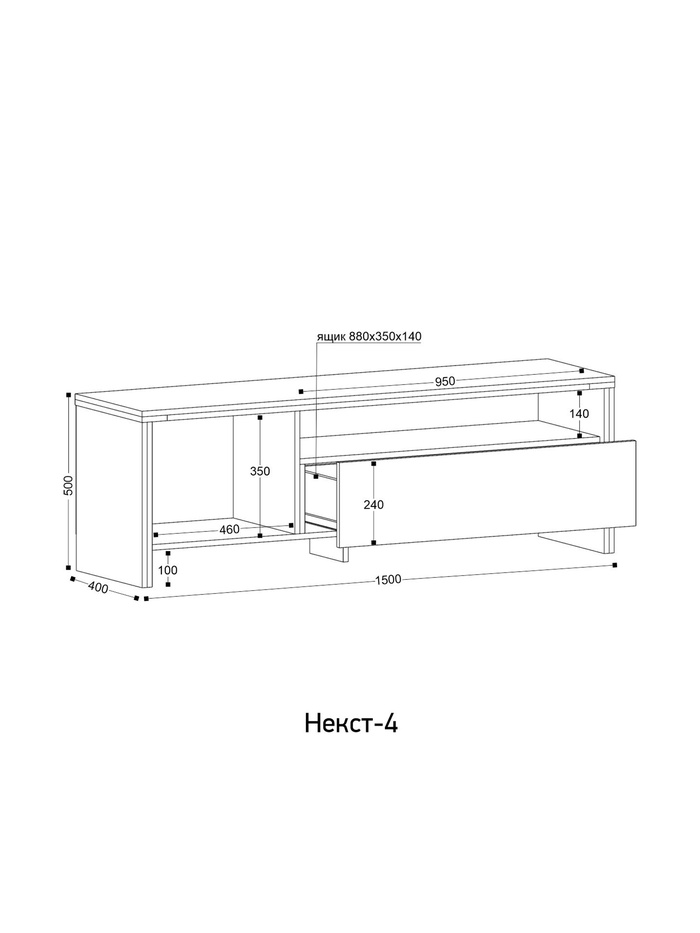 Технические характеристики Тумба под ТВ «Некст – 4», 1500×400×500 мм, цвет винтерберг/чёрный
