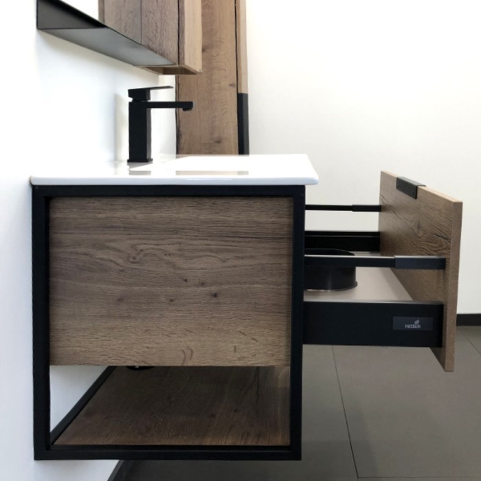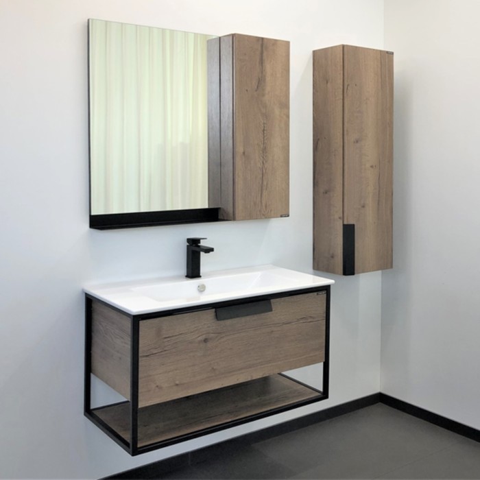 Тумба-умывальник COMFORTY «Бонн-90» цвет дуб темный, с раковиной Quadro 90