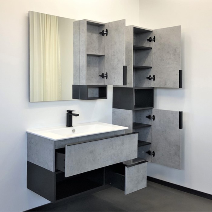 Тумба-умывальник COMFORTY «Франкфурт-90» цвет бетон светлый, с раковиной Quadro 90
