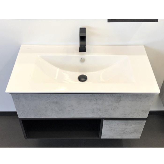 Технические характеристики Тумба-умывальник COMFORTY «Франкфурт-90» цвет бетон светлый, с раковиной Quadro 90