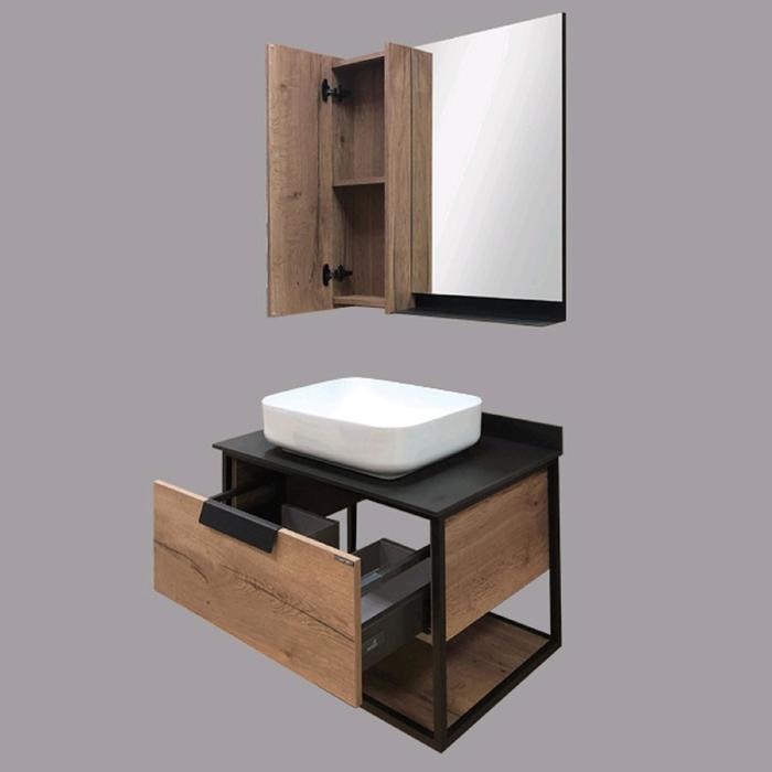 Технические характеристики Тумба-умывальник COMFORTY «Кёльн-75», дуб темный с чёрной столешницей с раковиной T-Y9378