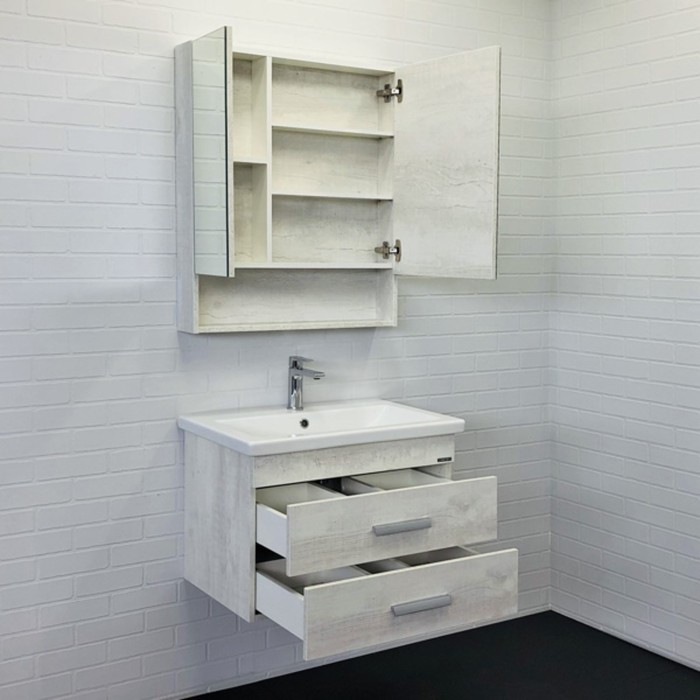 Тумба-умывальник COMFORTY «Никосия-70П» цвет дуб белый, с раковиной COMO 70