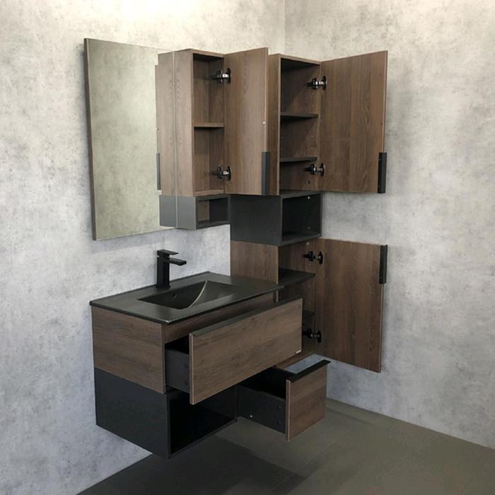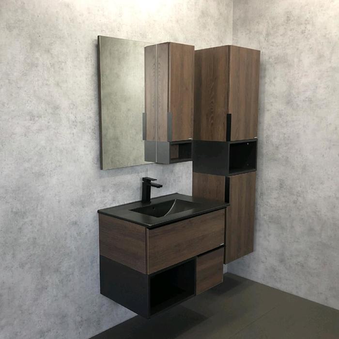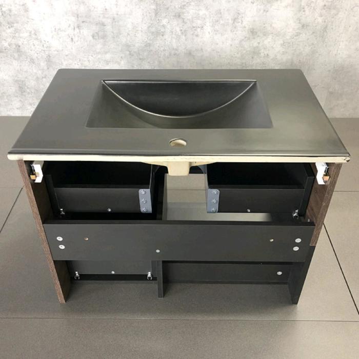 Тумба-умывальник «Франкфурт-75», дуб шоколадно-коричневый, с раковиной 75E чёрный матовый