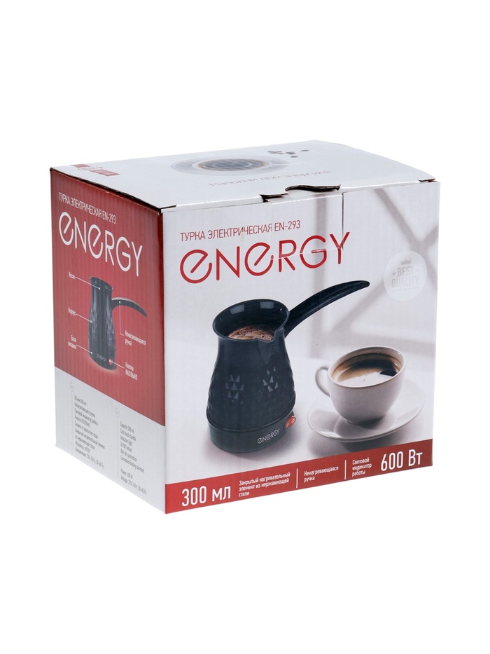 Турка электрическая Energy EN-293, 600 Вт, 300 мл, 60 см, термостойкий пластик, чёрная