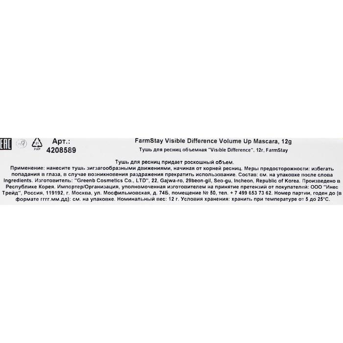 Тушь для ресниц FarmStay Visible Difference Volume Up Mascara, для объёма