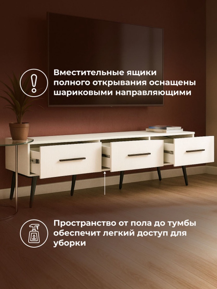 Тумба под ТВ «Орсиэль», 1650×450×440 мм, цвет белый – сочетает практичность и удобство в использовании. Подходит для повседневного использования и легко вписывается в интерьер дома или офиса.