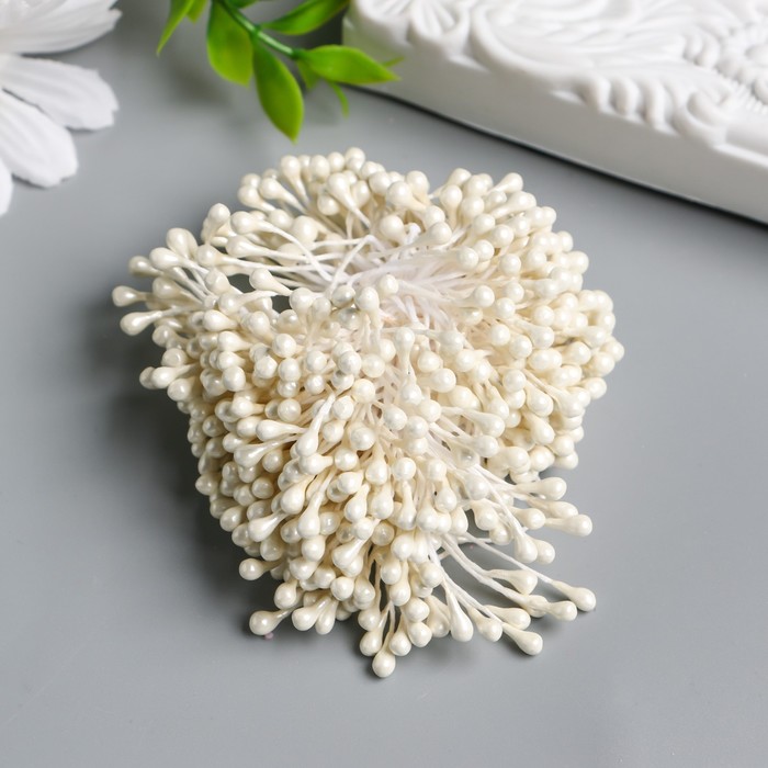 Тычинки для цветов "Капельки глянец молочные" набор 300 шт длина 6 см