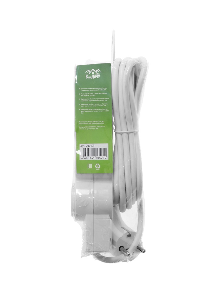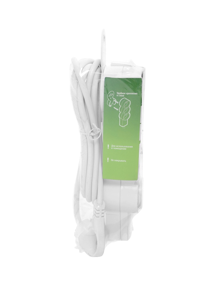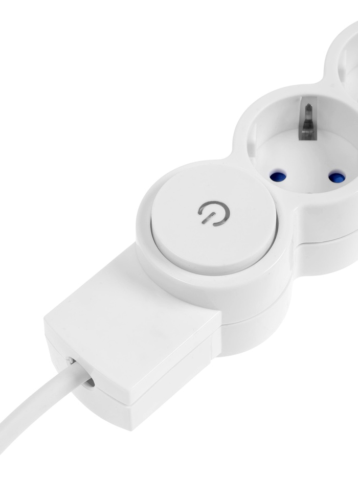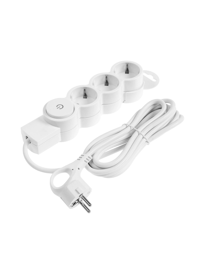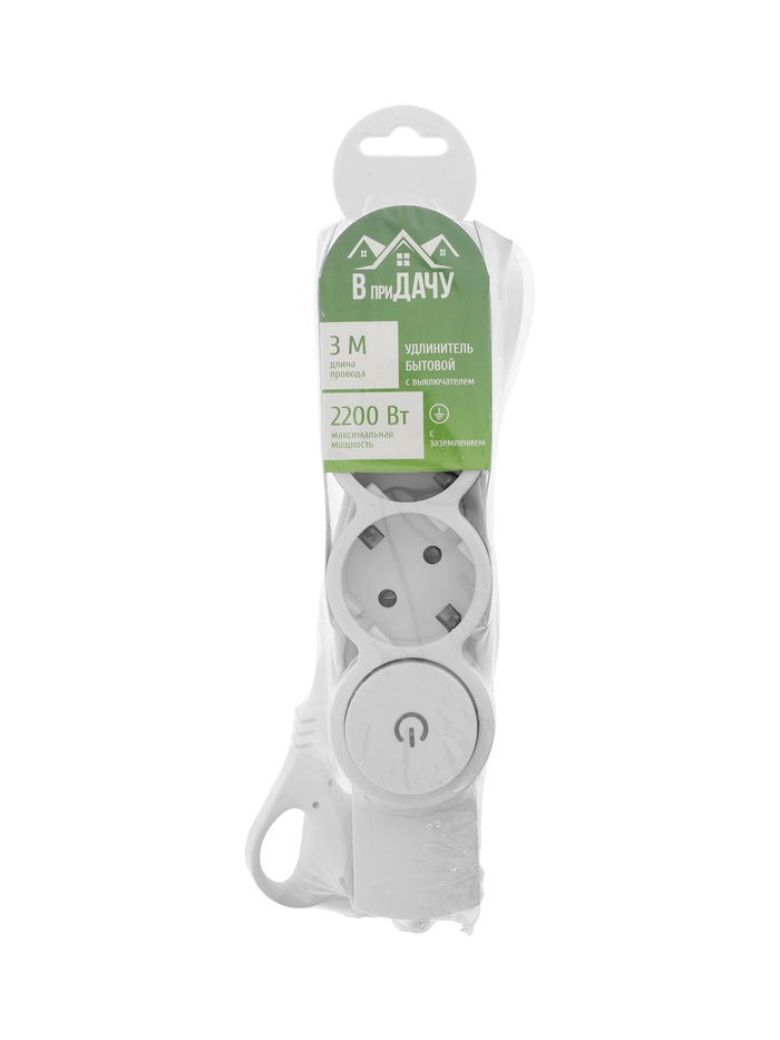 Удлинитель с выключателем, 3 розетки, 3 м, 10 А, 2200 Вт, ПВС 3×0.75 мм², с заземлением, белый