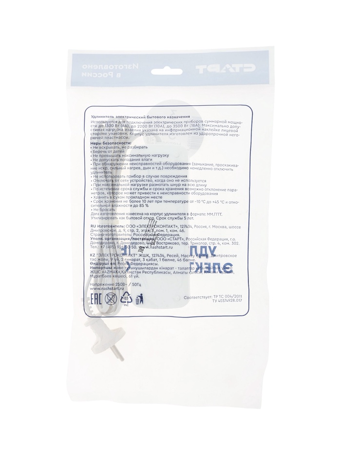 Удлинитель СТАРТ УХ6‑103 с длиной кабеля 3 м и тремя розетками предоставляет простой и надёжный способ расширить возможности подключения бытовых приборов к сети. Длинный шнур позволяет удобно разместить устройства в комнате или рабочей зоне, а белый корпус гармонично смотрится в любом интерьере. Благодаря стандартному кабелю ШВВП с сечением 2×0,75 мм² он подходит для повседневного использования в доме, офисе или мастерской.