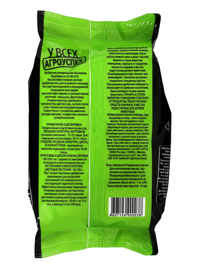 Технические характеристики Удобрение «Карбамид», «Агроуспех» 1 кг