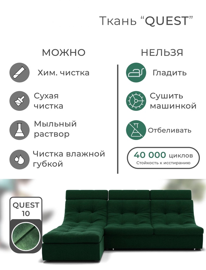 Технические характеристики Диван угловой модульный «Монако 2», ППУ, механизм венеция, велюр, цвет квест 010