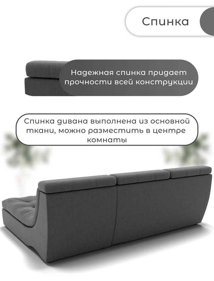 - Эстетика: спинка выполнена в основной ткани, что позволяет использовать диван для зонирования пространства.
