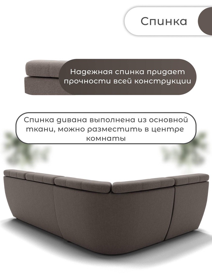 - Эстетика: спинка выполнена в основной ткани, что позволяет использовать диван для зонирования пространства.
