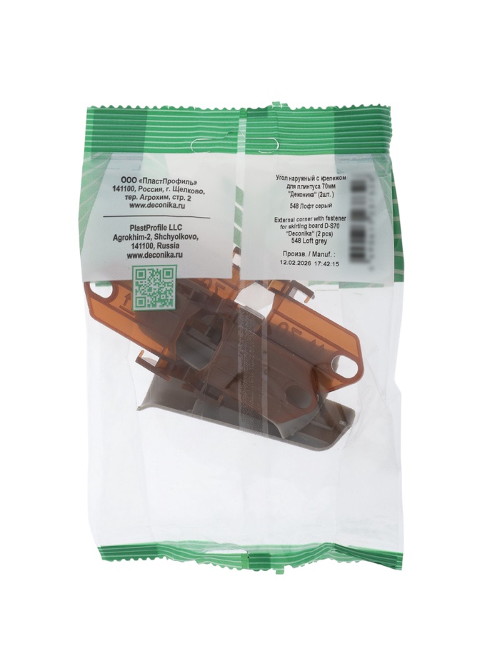 Технические характеристики Угол наружный с крепежом для плинтуса 70мм "Деконика" (2шт. во флоупаке), 548 Лофт серый