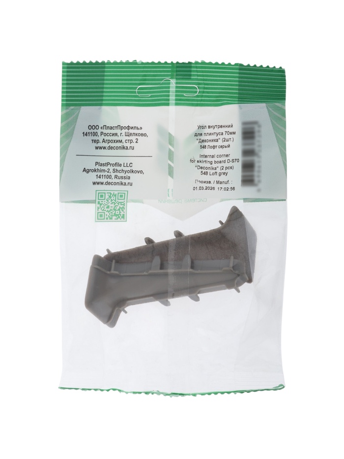 Угол внутренний для плинтуса 70мм "Деконика" (2шт. во флоупаке), 548 Лофт серый