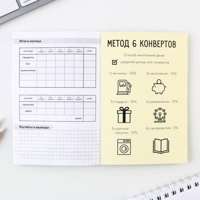 Технические характеристики Умный блокнот для планирования финансов «Деньги», формат А6, 68 листов.