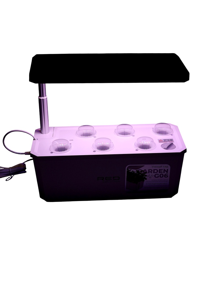 Умный сад RED SOLUTION G06, на 6 растений, 15 Вт, 2.5 л, до 40 см, сенсорное управление, белый