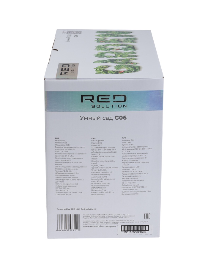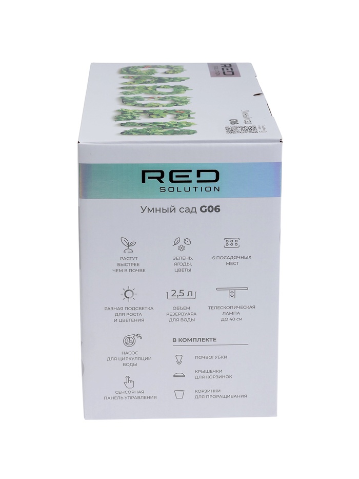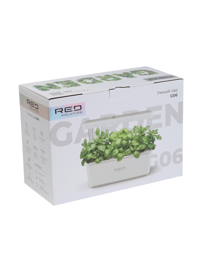 Технические характеристики Умный сад RED SOLUTION G06, на 6 растений, 15 Вт, 2.5 л, до 40 см, сенсорное управление, белый