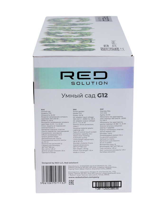 Технические характеристики Умный сад RED SOLUTION G12, на 12 растений, 24 Вт, 3.5 л, до 32 см, сенсорное управление, белый