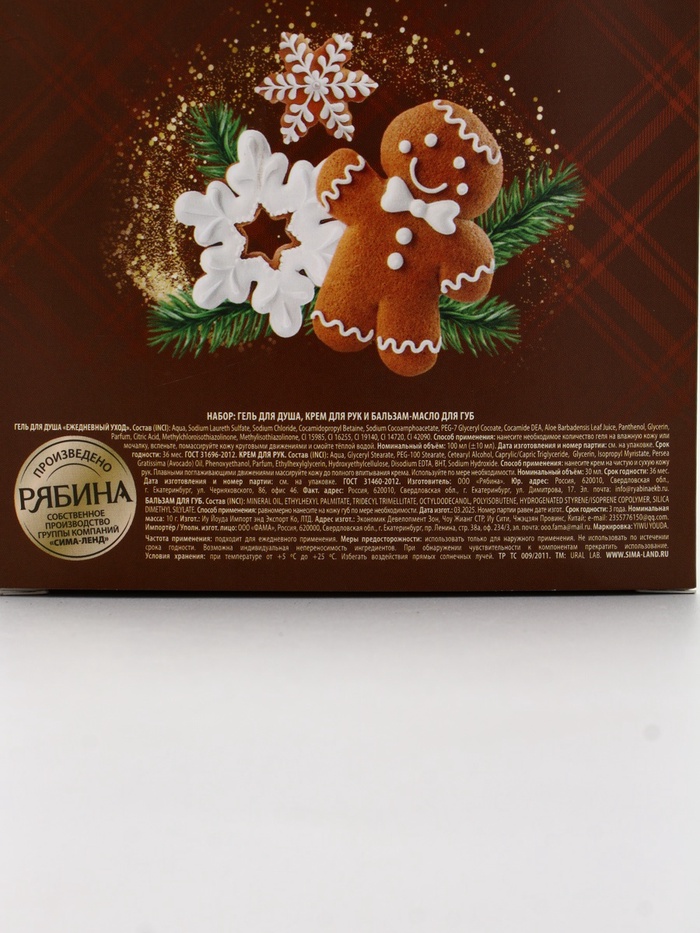 Технические характеристики Подарочный набор новогодний: гель для душа, крем для рук и бальзам для губ, аромат печенье, URAL LAB