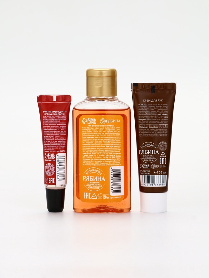 | Составляющие набора | Бальзам для губ; Гель для душа; Крем для рук |