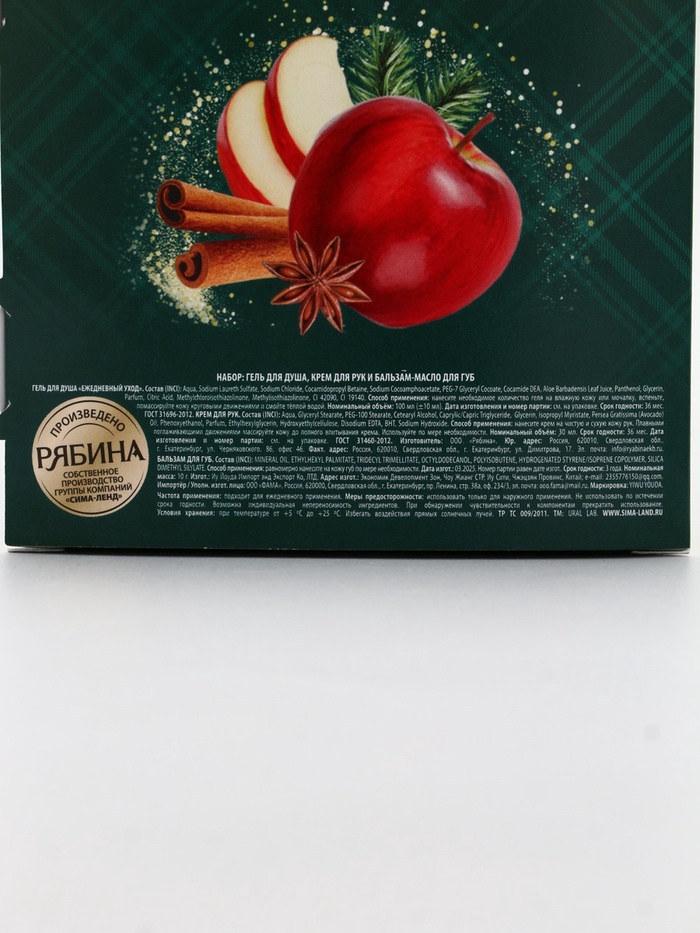 Технические характеристики Подарочный набор новогодний: гель для душа, крем для рук и бальзам для губ, аромат яблоко, URAL LAB