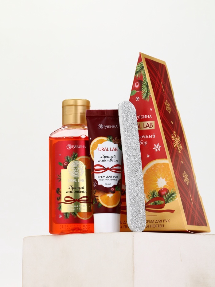 URAL LAB Арома Саунд Набор гель для душа, крем для рук и пилка для ногтей, глинтвейн