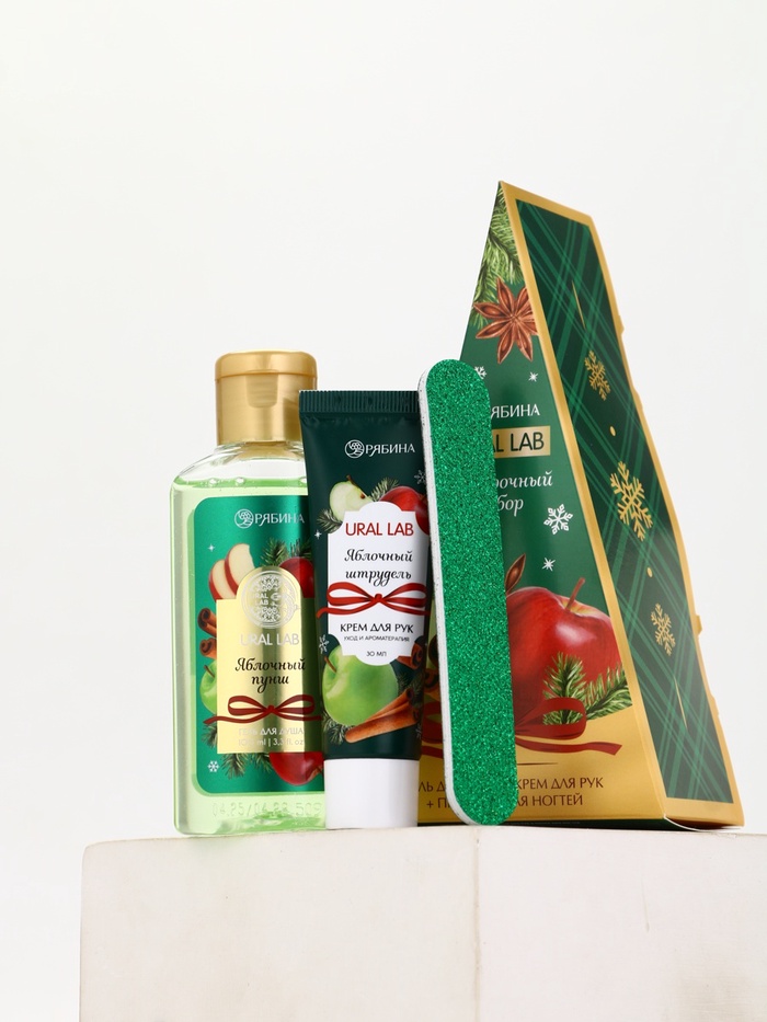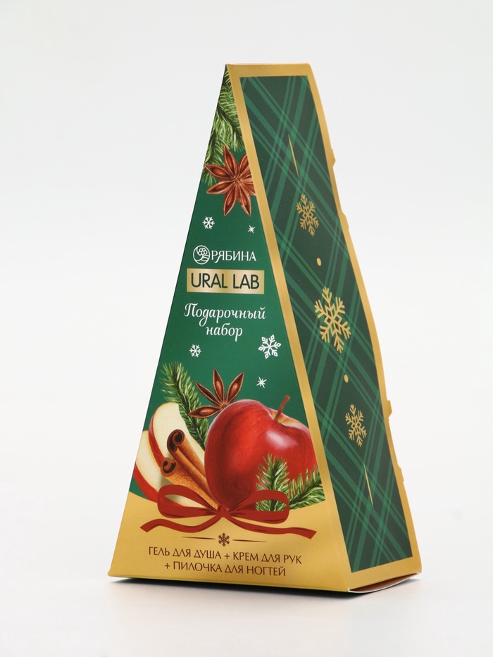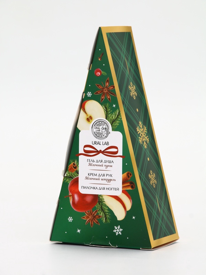Технические характеристики Подарочный набор новогодний: гель для душа, крем для рук и пилка для ногтей, аромат яблоко, URAL LAB