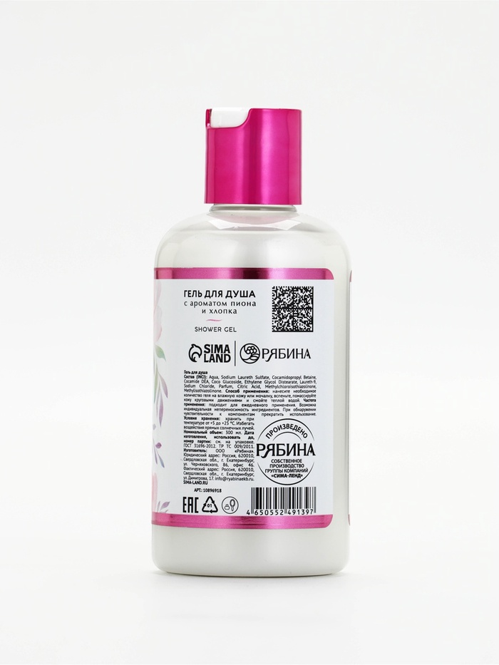 Гель для душа женский, с ароматом пиона и хлопка, 300 мл, URAL LAB
