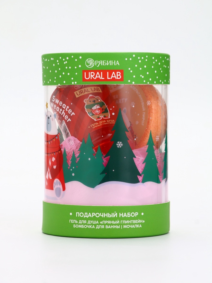 Технические характеристики Подарочный набор новогодний в тубусе «Снеговичок», бомбочка, гель, мочалка, URAL LAB