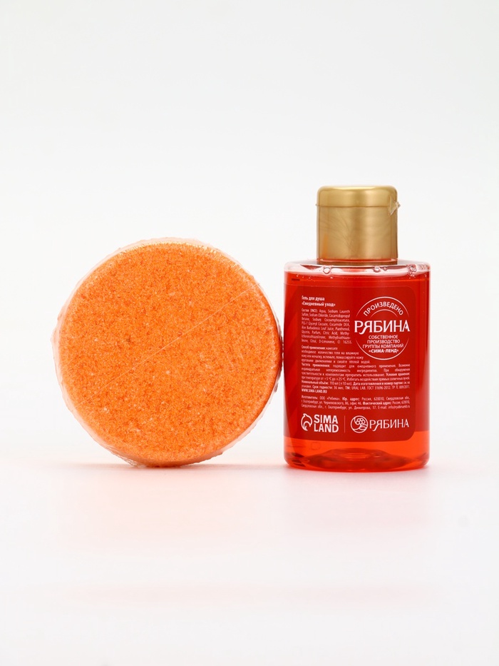 | Составляющие набора | Бомбочка для ванн; Гель для душа; Мочалка |
