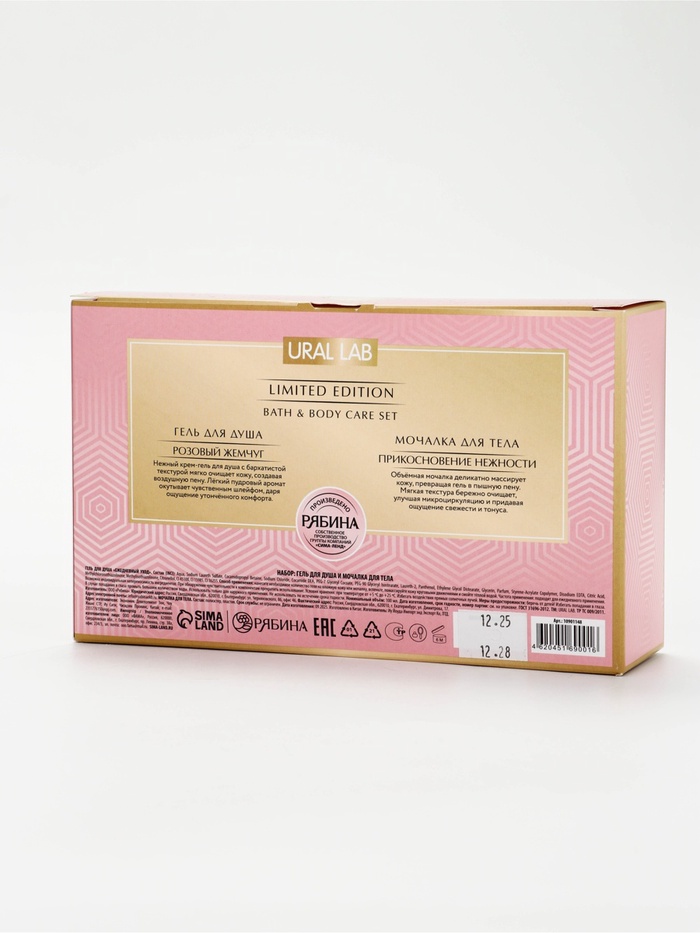 Технические характеристики Подарочный набор: гель для душа 100 мл м мочалка ракушка, URAL LAB