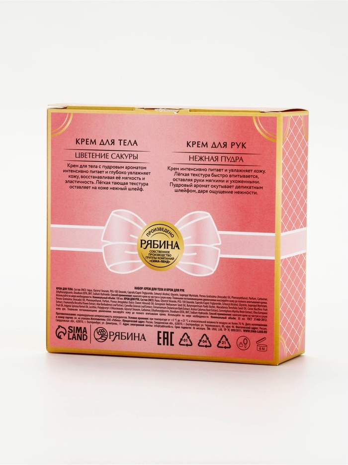 | Составляющие набора | Крем для рук; Крем для тела |
