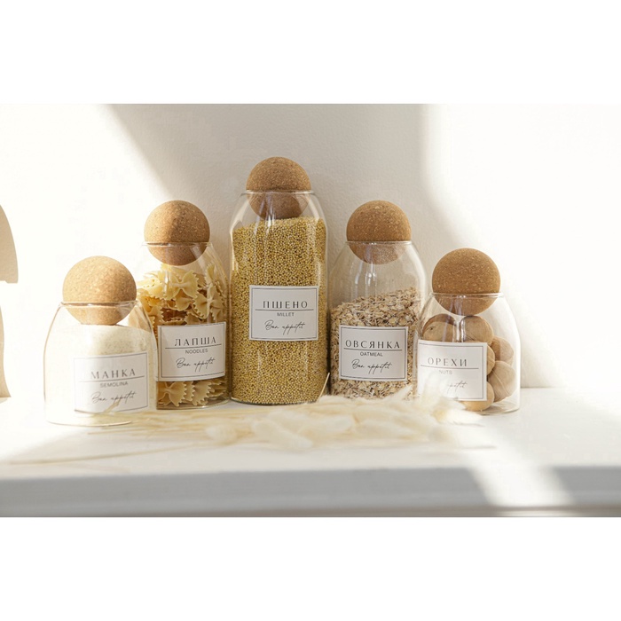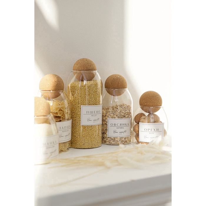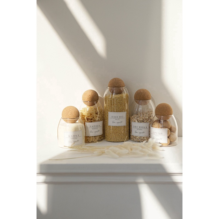 УЦЕНКА Банка для хранения сыпучих продуктов «Эко. Шар», 1.1 л, 9.5×24 см, с пробковой крышкой, стекло