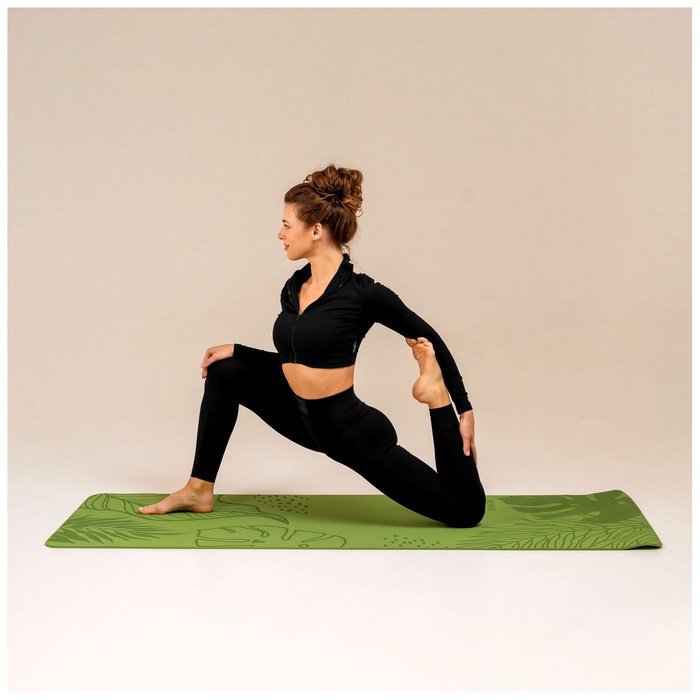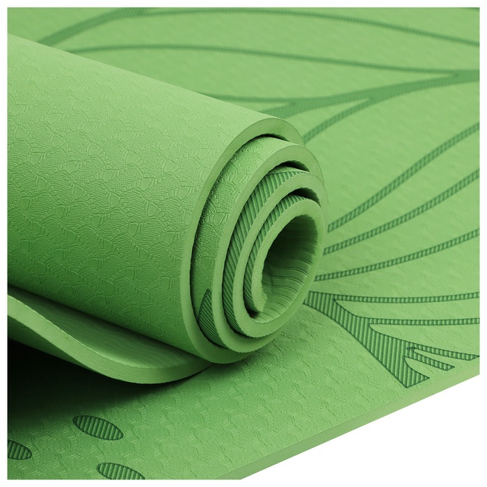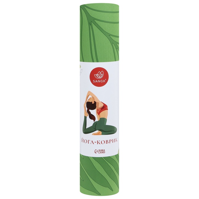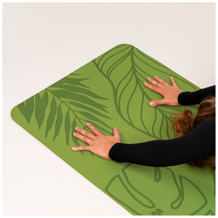 УЦЕНКА Коврик для йоги Sangh Tropics, нескользящий, 183×61×0.6 см, зелёный