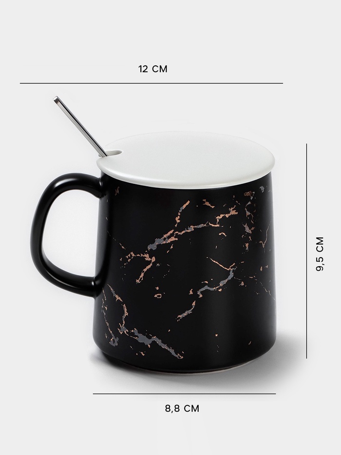 Технические характеристики УЦЕНКА Кружка с ложкой «Чёрный мрамор», 350 мл, керамика, чёрная