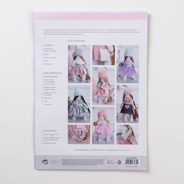 Технические характеристики УЦЕНКА Мягкая кукла Молли, набор для шитья, 21×0.5×29.7 см