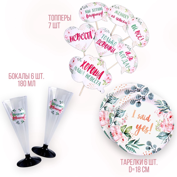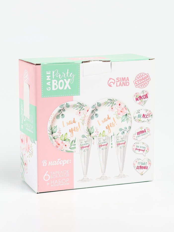 Технические характеристики УЦЕНКА Набор бумажной посуды "Свадебный" 6 тарелок, 6 стаканов