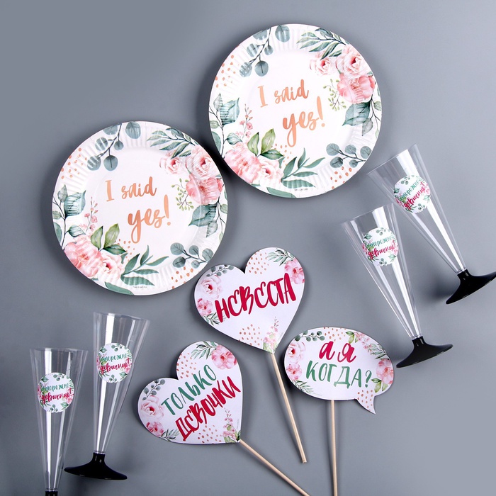 УЦЕНКА Набор бумажной посуды "Свадебный" 6 тарелок, 6 стаканов