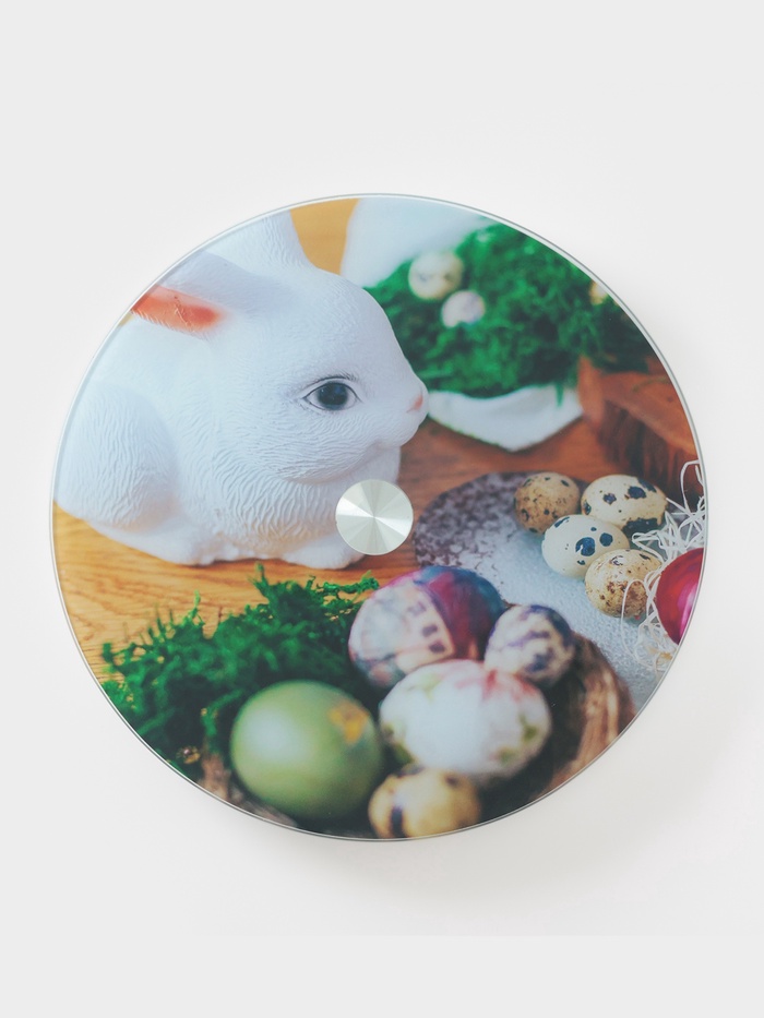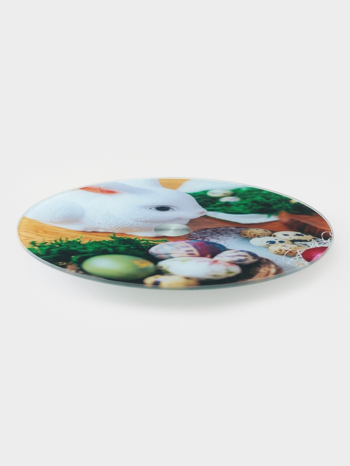 Технические характеристики УЦЕНКА Подставка для торта Доляна «Пасхальный заяц», d=32 см, вращающаяся, стекло, разноцветная