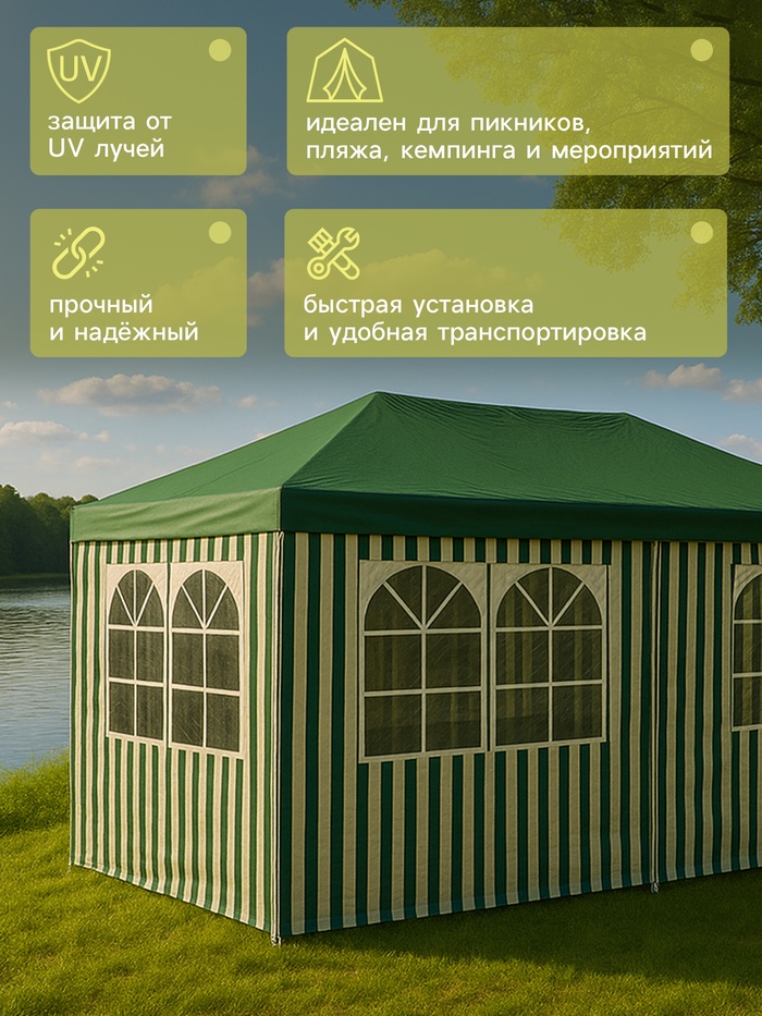 УЦЕНКА Шатёр туристический, 600×300 см, закрытый, зелёный