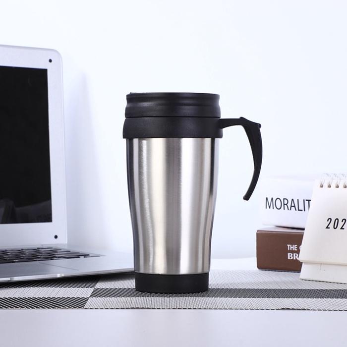- Термокружка выполнена из высококачественной нержавеющей стали, пластика и силикона, поэтому устойчива к механическим повреждениям.