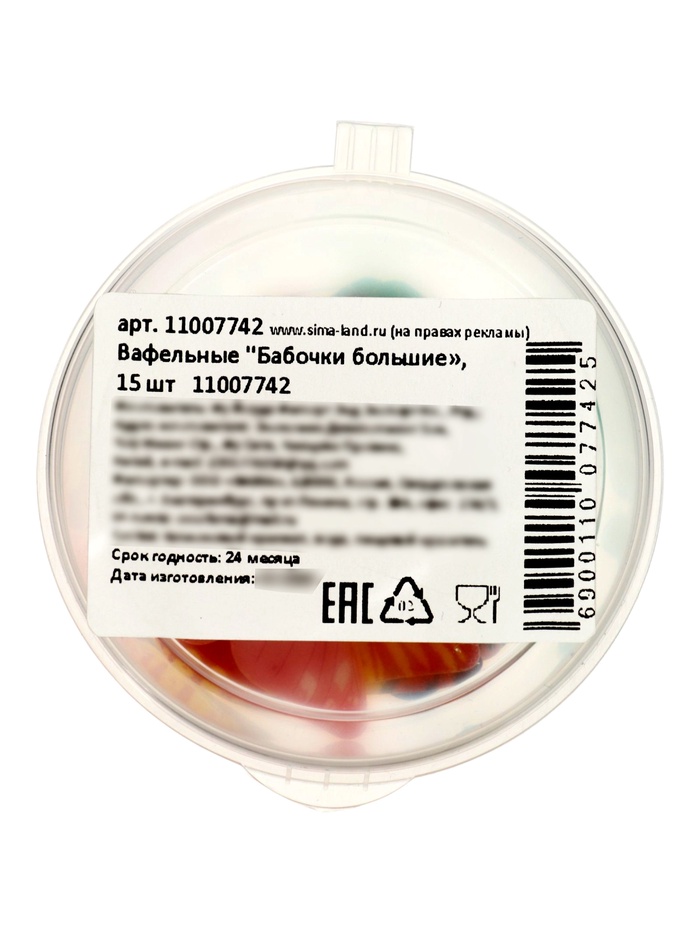 Технические характеристики Вафельный декор «Бабочки», большие, 15 шт.