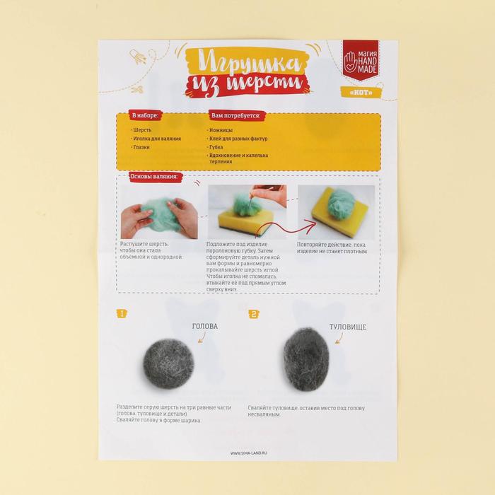 Валяние из шерсти. Игрушка «Кот», набор для творчества