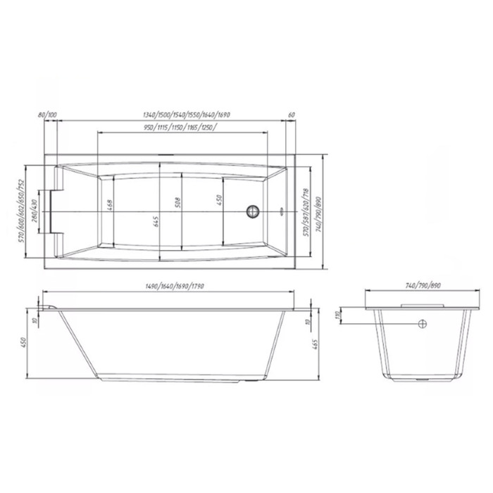 Технические характеристики Ванна акриловая 1MarKa Aelita, 180х80 см, Slim, без каркаса и панели